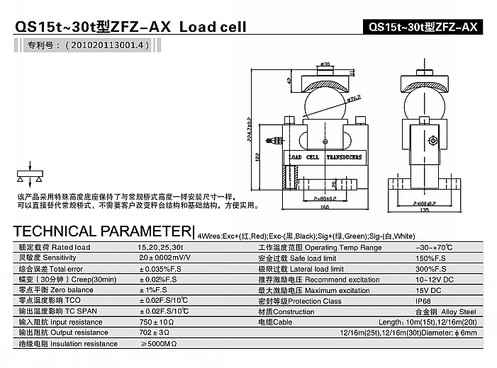 QS15t~30t型(xing)ZFZ-AX稱重(zhong)傳感(gan)器(qi)