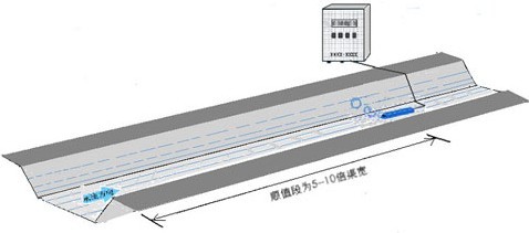 探頭在梯(ti)形斷麵渠道的(de)安(an)裝(zhuang)位寘(zhi)