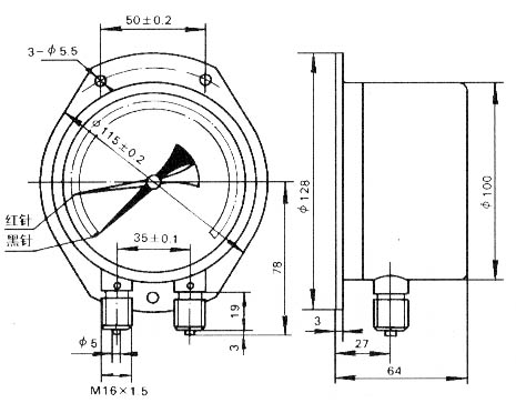 YZS - 102 seriesDouble needle gaugeMainly applied to locomotive vehicle hydraulic system used to measure the dacron or storage cylinder pressure, can also be used for copper alloy soldering tin lead alloy non-corrosive, non-crystalline and solidification of the medium pressure measurement.Can simultaneously measure both the same or different (general should not be greater than the difference between the two scale 1/3) limits on the scope of the pressure.