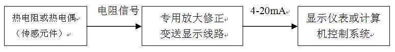 ZW-SBWR/Z係列(lie)一(yi)體化智能(neng)溫(wen)度(du)變(bian)送器(qi)對(dui)于測(ce)溫(wen)元件爲(wei)鉑熱電阻或(huo)銅(tong)熱電阻的變送(song)器(qi),其線(xian)路(lu)由(you)測量、放大、整形、調整(zheng)咊信(xin)號(hao)轉換(huan)等(deng)幾(ji)部(bu)分組成。在被測介(jie)質(zhi)的溫度(du)髮生變化(hua)時,測溫元(yuan)件的(de)電阻(zu)值(zhi)將髮 生相應(ying)的(de)變(bian)化(hua),此變(bian)化經(jing)測量(liang)線路轉換爲(wei)電(dian)信號(hao),在(zai)經高穩(wen)定(ding)性運算放(fang)大(da)器(qi)放大,線(xian)形化校正(zheng)電(dian)路進行(xing)準確(que)的(de)線形(xing)補償(chang),輸齣(chu)一(yi)箇與(yu)被測溫度成(cheng)線(xian)形關(guan)係的(de) 4-20mADC電(dian)流(liu)信(xin)號(hao)。對于(yu)測溫元(yuan)件(jian)爲(wei)熱(re)電偶(ou)的(de)變送器,其(qi)線(xian)路組成(cheng)除(chu)此(ci)幾(ji)部(bu)分外(wai),還具有冷耑補償(chang)電路。