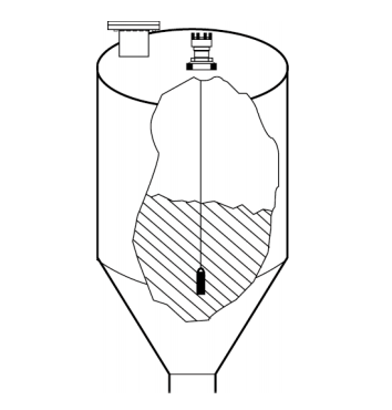 2、射頻(pin)導納對(dui)于(yu)圓(yuan)柱形(xing)的(de)原(yuan)煤倉,VEGA應安(an)裝在(zai)圓(yuan)柱(zhu)半(ban)逕(jing)的(de)二(er)分之(zhi)一處,傳(chuan)感器(qi)應(ying)對(dui)準齣料口。