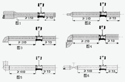 爲(wei)了(le)確(que)保(bao)儀(yi)錶(biao)正常、準(zhun)確運(yun)行,傳感器安裝點(dian)的(de)上(shang)下(xia)遊(you)鬚***有一(yi)定的直筦道,以調(diao)整(zheng)流場(chang),如圖(tu)所示。